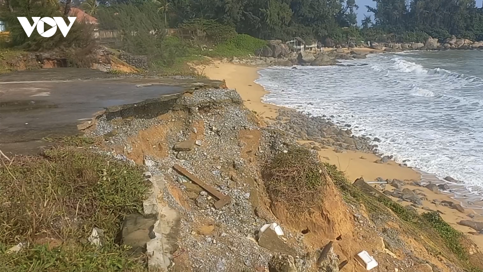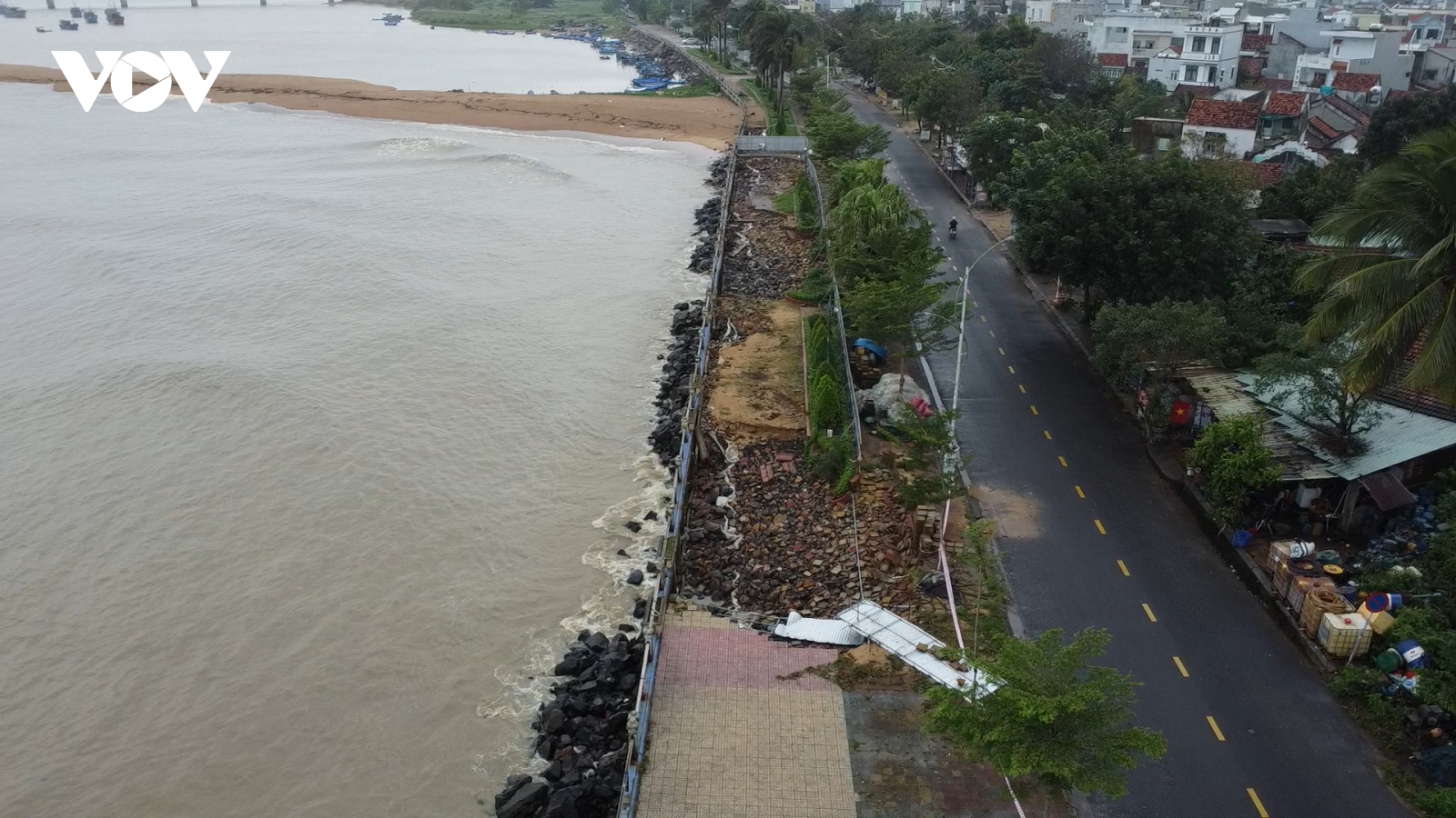 VOV.VN - Những ngày qua, mưa kéo dài cùng với triều cường kèm theo sóng lớn đã làm sạt lở nhiều đoạn kè Bạch Đằng, phường 6, thành phố Tuy Hòa, tỉnh Phú Yên.
