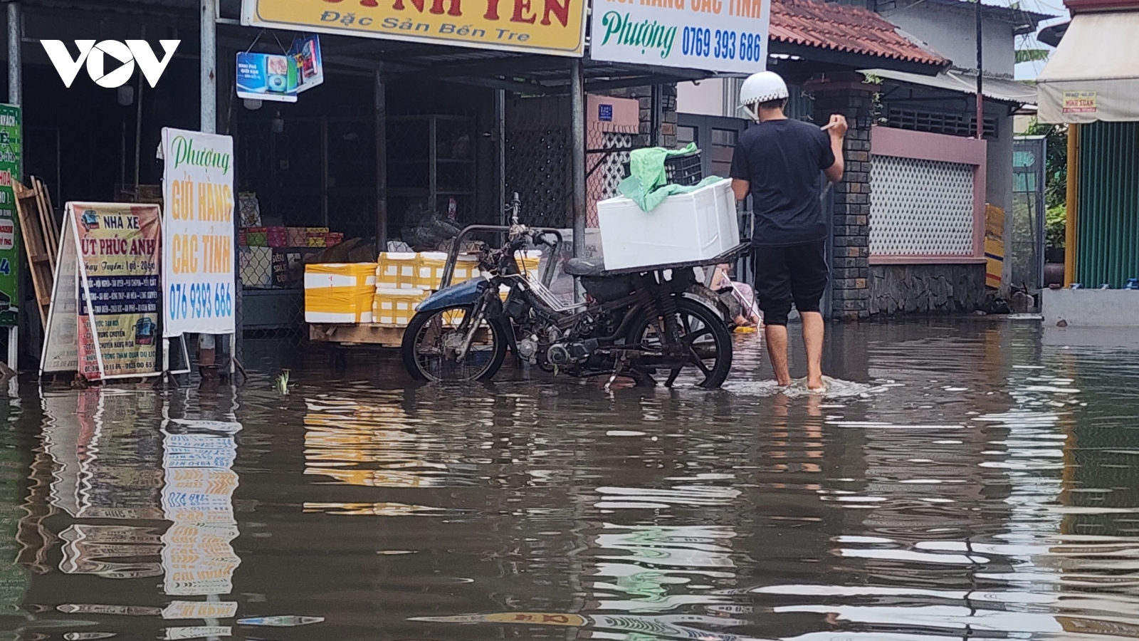 VOV.VN - Theo Đài Khí tượng Thuỷ văn tỉnh Bến Tre, đợt triều cường xảy ra mấy ngày nay khiến mực nước tại các trạm thuỷ văn đạt mức cao nhất so với lịch sử cùng kỳ nhiều năm qua, nhiều nơi ngập nước trên diện rộng.