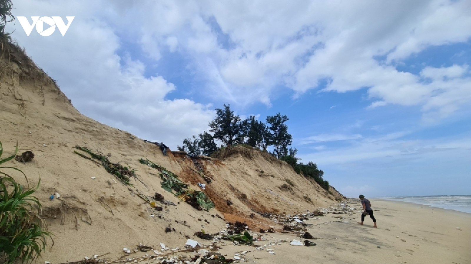 VOV.VN - Sau những đợt mưa bão vừa qua, triều cường dâng, biển xâm thực mạnh, nhiều bờ biển tại tỉnh Quảng Bình bị sạt lở nghiêm trọng, ảnh hưởng đến an toàn tính mạng và tài sản của người dân ven biển.
