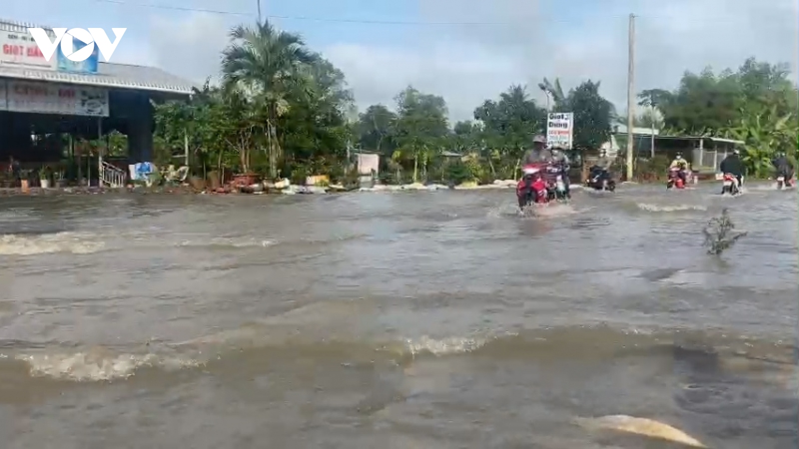 VOV.VN - Ngày 27/10, Đài Khí tượng Thủy văn tỉnh Hậu Giang tiếp tục cảnh báo triều cường kết hợp với mực nước cao trên sông Hậu và mưa tại chỗ gây ngập lụt trong tỉnh.