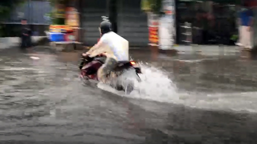 Mưa lớn kèm triều cường dâng cao khiến người dân Cần Thơ di chuyển khó khăn