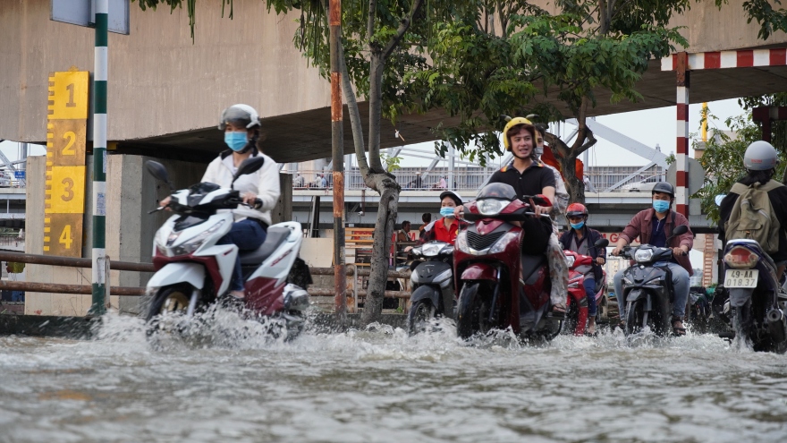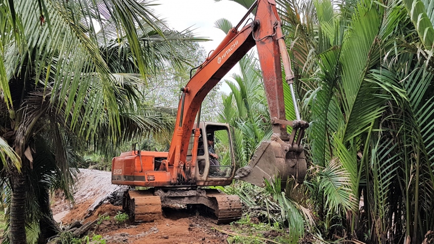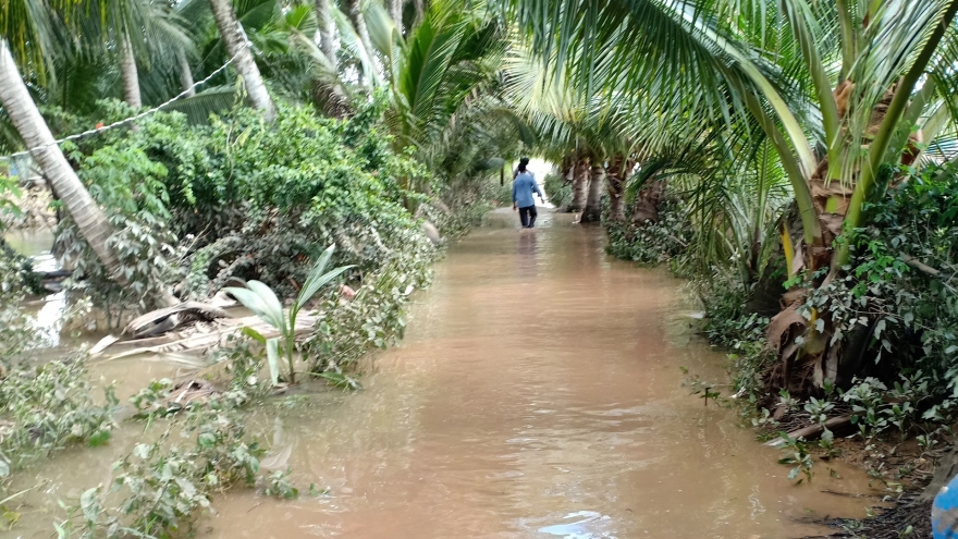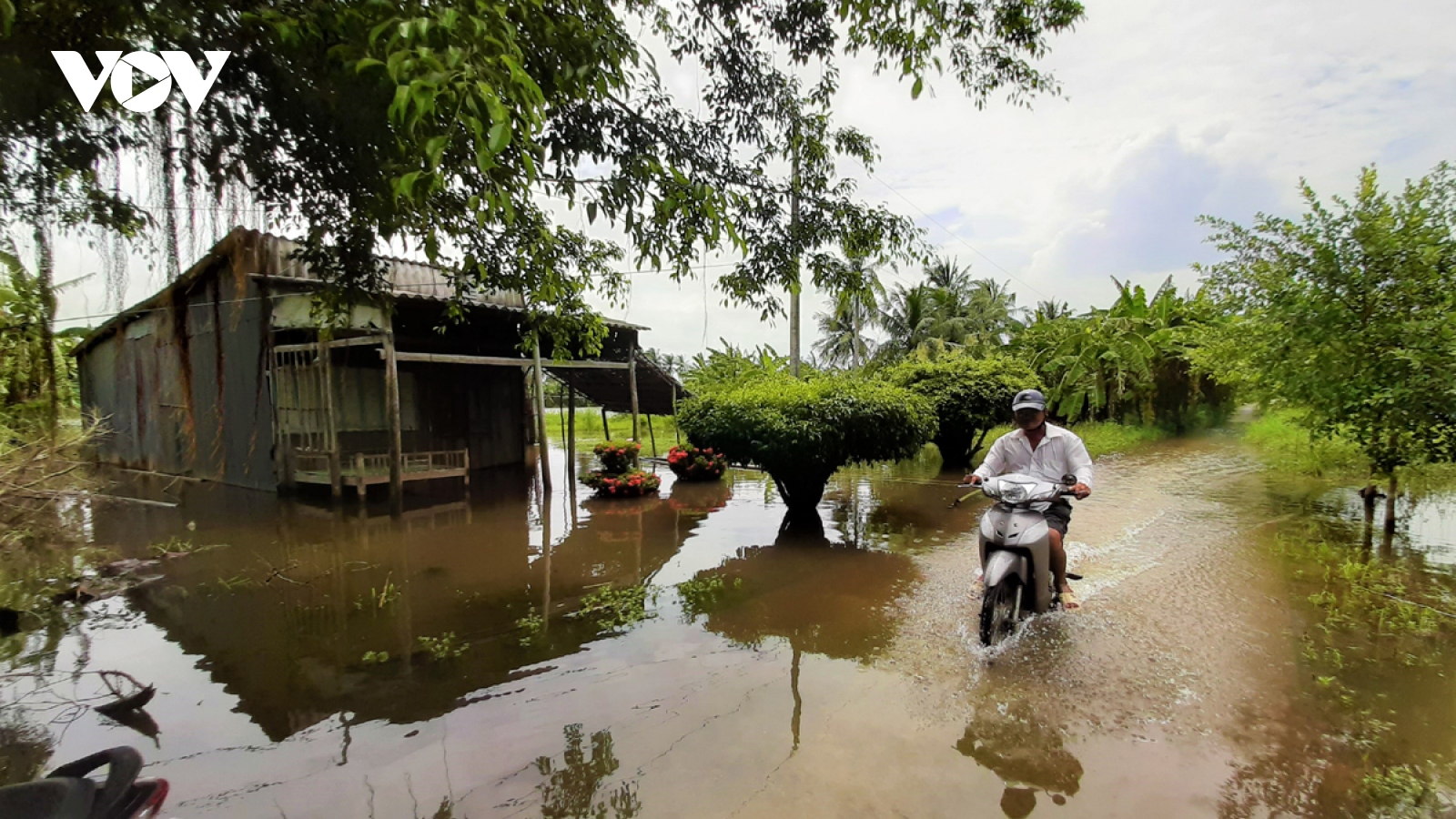 VOV.VN - Triều cường dâng cao làm 15 đoạn đê, bờ bao, đường nông thôn bị vỡ và hơn 1.500m bờ bao và tuyến lộ bị tràn, làm ngập hơn 70ha hoa màu của người dân huyện Cù Lao Dung, tỉnh Sóc Trăng.