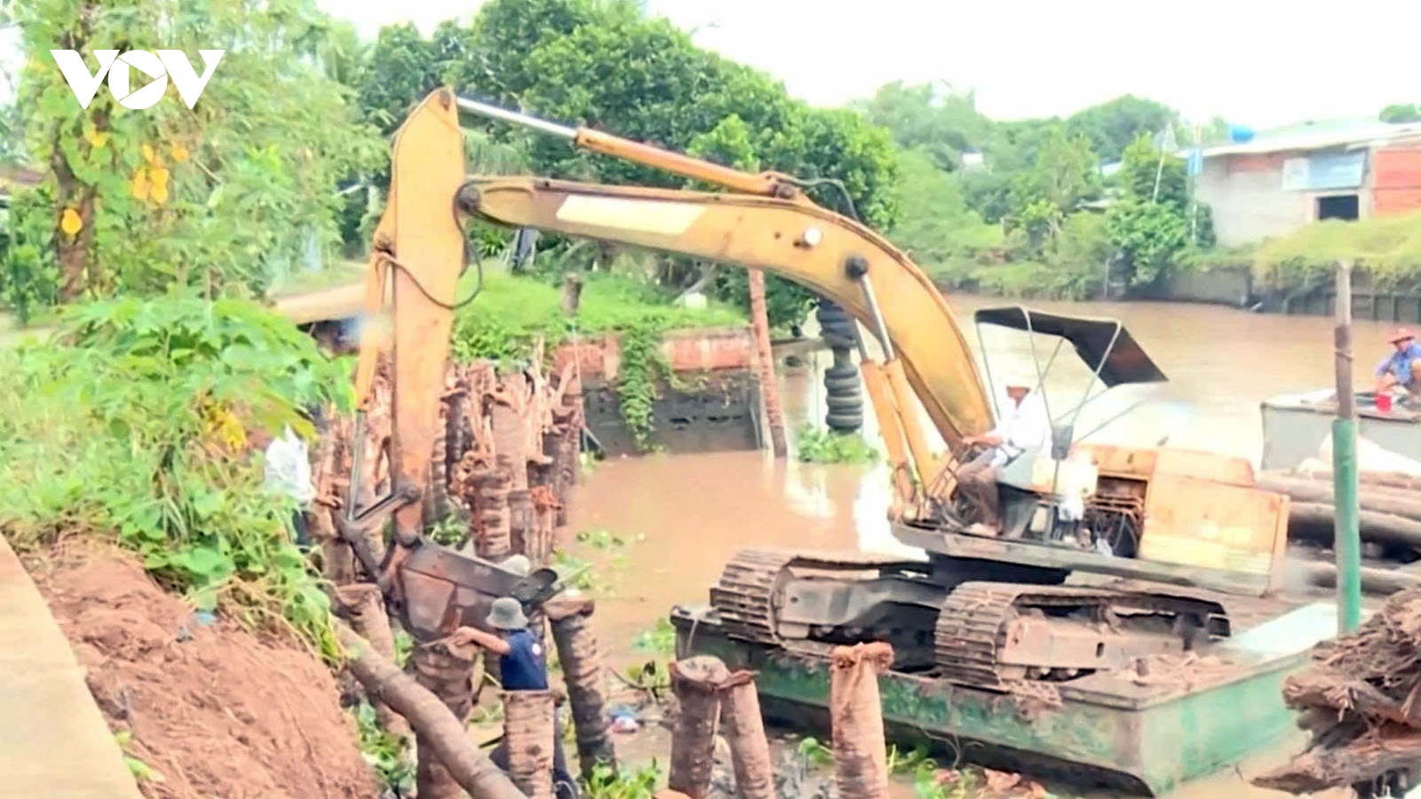 VOV.VN - Kỳ triều cường vừa qua tại tỉnh Vĩnh Long đã gây ngập úng, sạt lở và sụt lún tại nhiều khu vực trên địa bàn tỉnh, làm ảnh hưởng đến diện tích đất sản xuất, vườn cây ăn trái, cũng như đời sống và sinh hoạt của người dân.