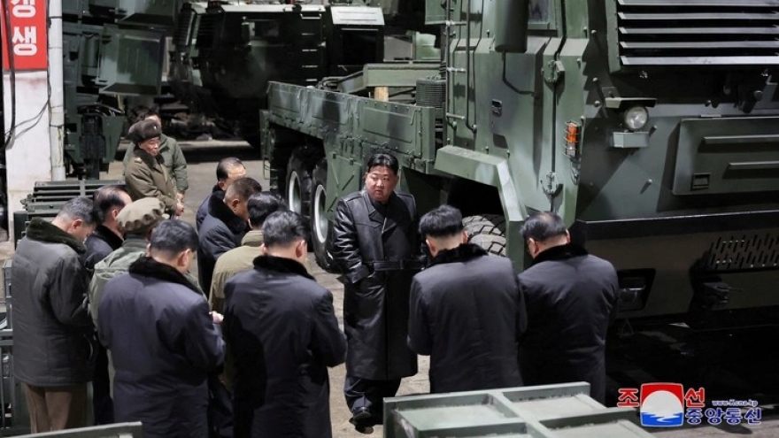 Nhà lãnh đạo Triều Tiên Kim Jong Un thị sát nhà máy sản xuất xe tăng