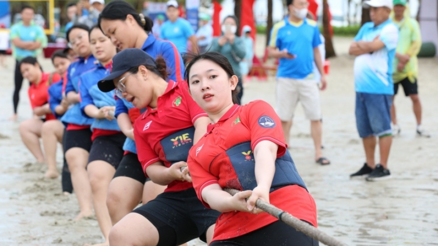 VOV.VN - Hôm nay (29/4), tại Khu du lịch quốc tế Đồi Rồng (quận Đồ Sơn, TP. Hải Phòng) đã diễn ra Liên hoan trò chơi dân gian biển đảo với sự tranh tài của hàng trăm VĐV đến từ 10 tỉnh, thành phố ven biển Việt Nam.