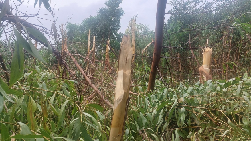 VOV.VN - Trong những ngày qua, do ảnh hưởng bão số 1, trên địa bàn tỉnh Cà Mau có hơn 114 ha cây keo lai của công ty, hộ nhận khoán và hợp tác đầu tư quản lý bị đổ, ngã.