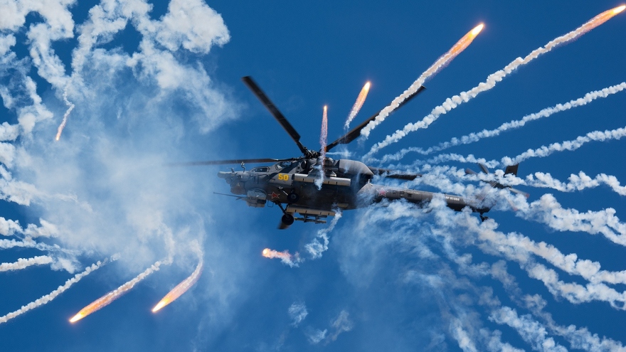 VOV.VN - Bộ Quốc phòng Nga đã công bố một video cho thấy "sức mạnh quái vật" của các trực thăng tấn công đa nhiệm Mi-35 và Mi-28 khi nhắm vào các mục tiêu của Ukraine.