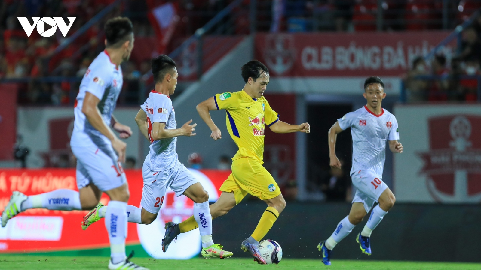 VOV.VN - Ở các trận đấu sớm của vòng 7 V-League 2021, Hà Nội FC thất thủ 0-2 tại Đà Nẵng trong khi HAGL tiếp tục thăng hoa với chiến thắng 2-0 tại sân Lạch Tray của Hải Phòng.
