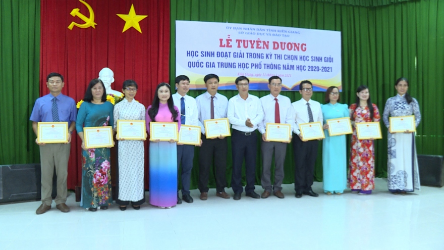 VOV.VN - Sáng 11/3, Sở Giáo dục – đào tạo tỉnh Kiên Giang tổ chức tuyên dương, khen thưởng cho 11 em học sinh trung học phổ thông đoạt giải cao trong kỳ thi học sinh giỏi cấp quốc gia năm học 2020 – 2021.