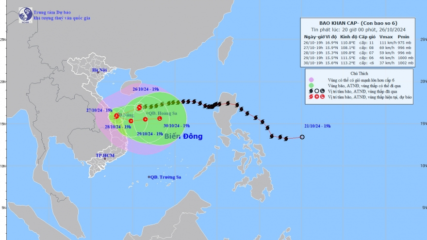 VOV.VN - Hồi 19h giờ tối nay, vị trí tâm bão ở vào khoảng 16,9 độ Vĩ Bắc; 110,8 độ Kinh Đông, trên vùng biển phía Tây Bắc quần đảo Hoàng Sa, cách Đà Nẵng khoảng 290km về phía Đông Đông Bắc. Sức gió mạnh nhất vùng gần tâm bão mạnh cấp 11 (103-117km/h), giật cấp 14. Di chuyển theo hướng Tây, tốc độ khoảng 20km/h.