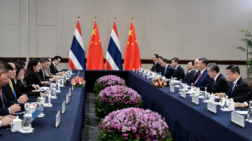 VOV.VN - Bên lề Tuần lễ cấp cao APEC 2024 đang diễn ra tại Peru, Thủ tướng Thái Lan Paetongtarn Shinawatra hôm 15/11 đã hội đàm với Chủ tịch Trung Quốc Tập Cận Bình, nhất trí đưa hợp tác Thái - Trung phát triển sâu rộng hơn nhân dịp kỷ niệm 50 năm thiết lập quan hệ ngoại giao.