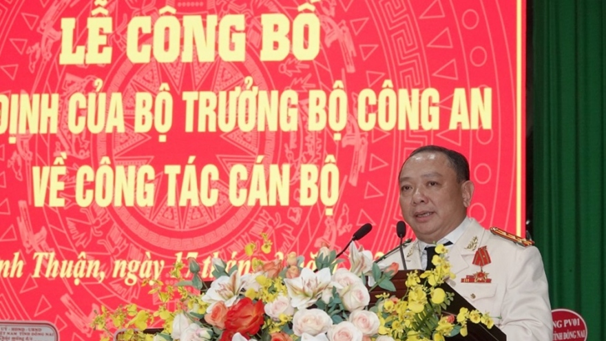 VOV.VN - Chiều 17/3, tại trụ sở Công an tỉnh Bình Thuận, Trung tướng Nguyễn Duy Ngọc, Ủy viên Trung ương Đảng, Thứ trưởng Bộ Công an chủ trì buổi lễ công bố quyết định về công tác cán bộ.