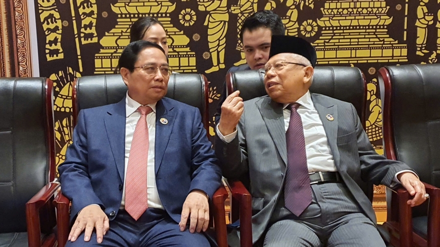 VOV.VN - Sáng ngày 11/10, nhân dịp dự Hội nghị Cấp cao ASEAN 44,45 và Hội nghị cấp cao liên quan tại Vientiane, Lào, Thủ tướng Chính phủ Phạm Minh Chính đã có cuộc gặp ngắn với Phó Tổng thống Indonesia Ma’ruf Amin, Trưởng đoàn Indonesia tham dự hội nghị.