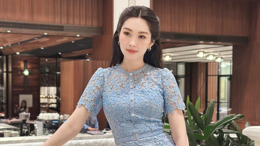 VOV.VN - Sao Việt 6/11: Hoa hậu Đặng Thu Thảo khoe dáng thon thả sau khi sinh con thứ ba. Người đẹp diện mẫu đầm hoa bó sát "kín cổng cao tường" có tông màu xanh cùng họa tiết hoa.