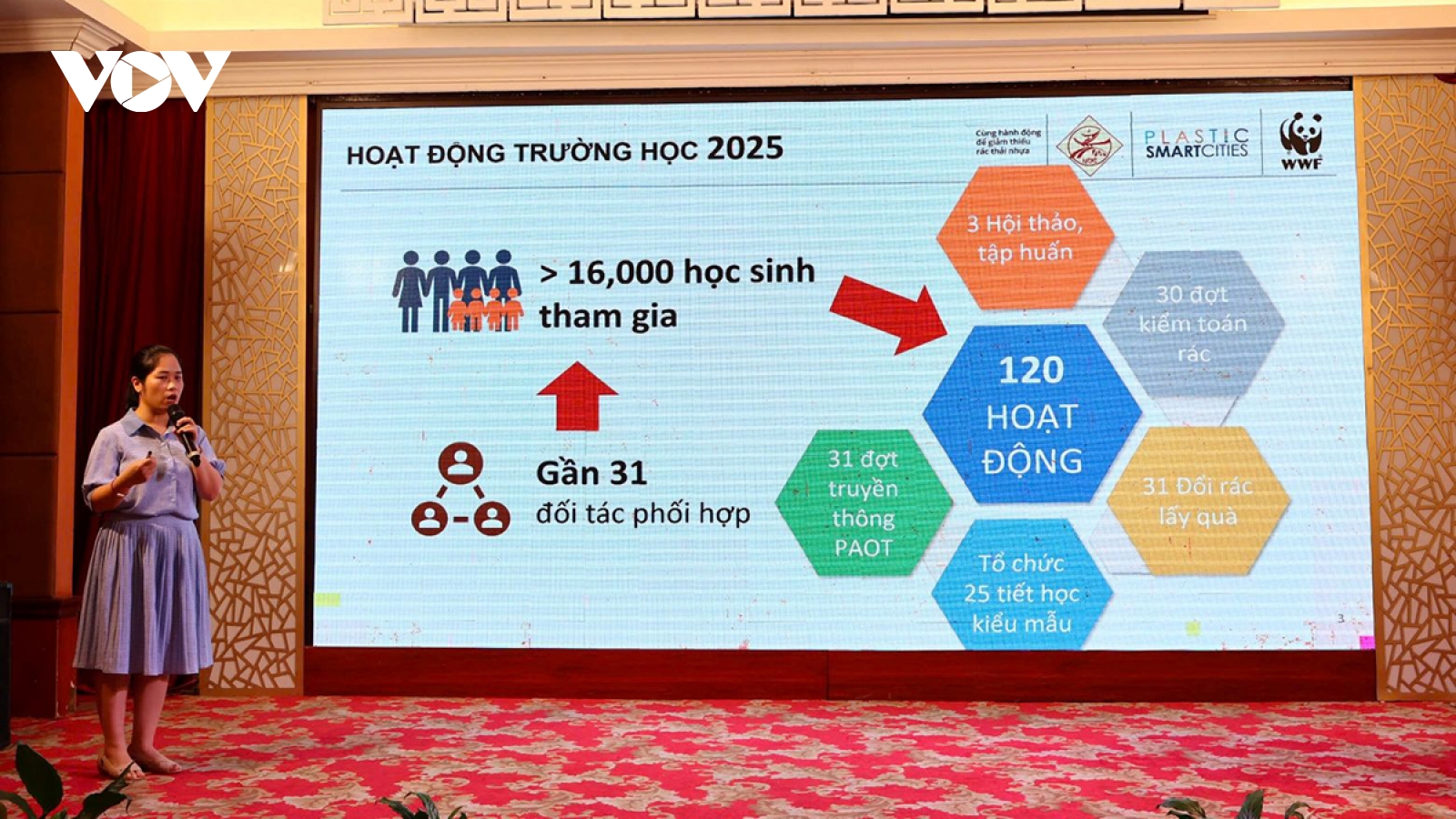 VOV.VN - Ngày 19/6, Dự án Huế - Đô thị giảm nhựa ở miền Trung Việt Nam phối hợp với Phòng Giáo dục và Đào tạo huyện Phú Vang, Quảng Điền và thị xã Hương Thủy tổ chức hội nghị tổng kết, chia sẻ kinh nghiệm và kết nối mô hình trường học giảm thiểu rác thải nhựa.