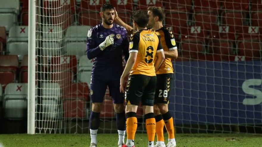 VOV.VN - Thủ môn Tom King của đội bóng hạng Tư Anh - Newport County bỗng nổi tiếng cả thế giới sau trận đấu diễn ra rạng sáng 20/1 theo giờ Việt Nam. Anh ghi bàn sau tình huống phát bóng từ vạch 5m50 của đội nhà.