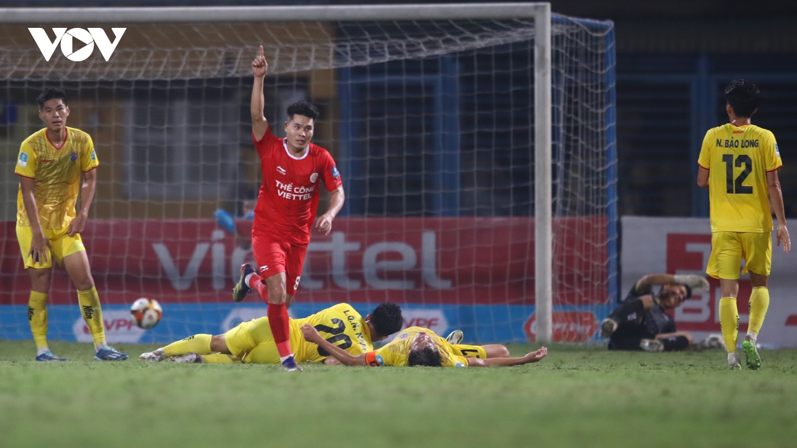 VOV.VN - Thể Công Viettel hoà 2-2 với PVF CAND dù phải chơi thiếu người trong thời gian thi đấu chính thức của trận tứ kết Cúp Quốc gia, sau đó thắng 5-3 ở loạt sút luân lưu.