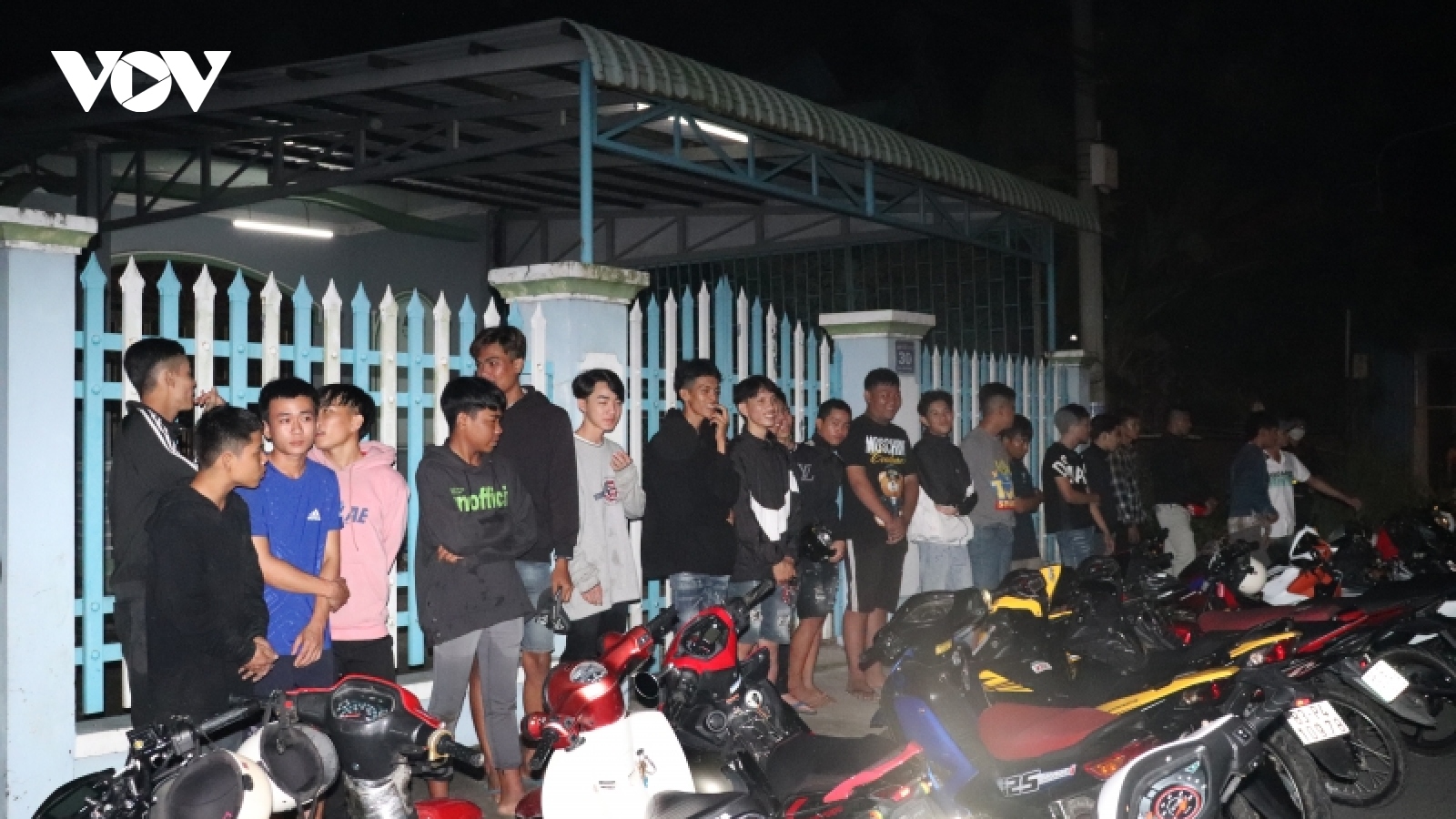 VOV.VN - Tối 12/2, các lực lượng chức năng thuộc công an Tiền Giang đã mật phục bắt giữ hàng chục đối tượng có hành vi chặn xe trên quốc lộ 1để tổ chức, cổ vũ đua xe trái phép.