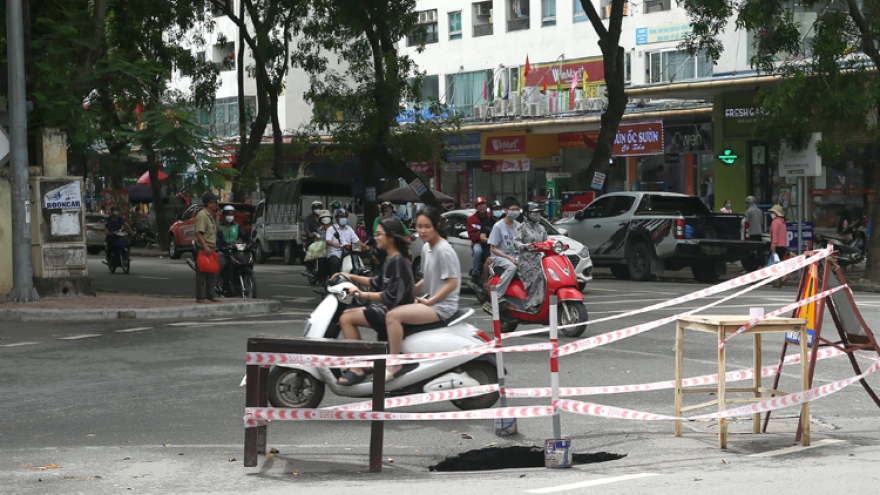 Sáng 12/7, người dân sống tại khu vực bán đảo Linh Đàm bất ngờ phát hiện một hố sụt sâu rộng khoảng 1 m, nằm giữa ngã tư đường Nguyễn Hữu Thọ giao với đường Nguyễn Phan Chánh, thuộc phường Hoàng Liệt (quận Hoàng Mai, Hà Nội).