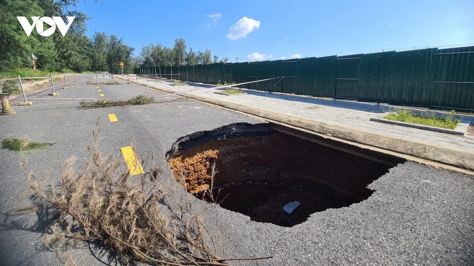 VOV.VN - Chiều 12/10, UBND xã Quang Phú, thành phố Đồng Hới, tỉnh Quảng Bình cùng các đơn vị liên quan đang lên phương án khắc phục một hố sụt lớn xảy ra trên địa bàn.