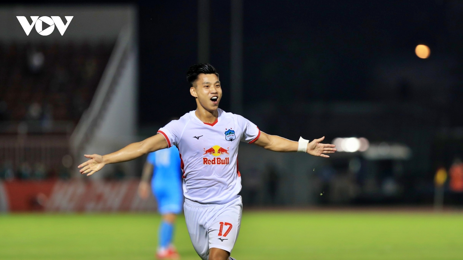 VOV.VN - Tiền vệ Nguyễn Thành Đồng của Hải Phòng lao tới bóp cổ đối thủ Nguyễn Tuấn Anh bên phía Hà Nội FC, sau khi bị phạm lỗi trong pha phản công ở trận đấu tối 10/6.