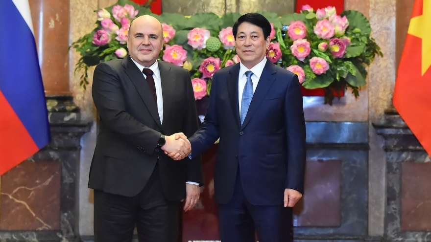 VOV.VN - Sáng 15/1, tại Phủ Chủ tịch, Chủ tịch nước Lương Cường đã tiếp Thủ tướng Chính phủ Nga Mikhail Mishustin và đoàn đại biểu Chính phủ Liên bang Nga đang có chuyến thăm chính thức Việt Nam từ ngày 14-15/1.