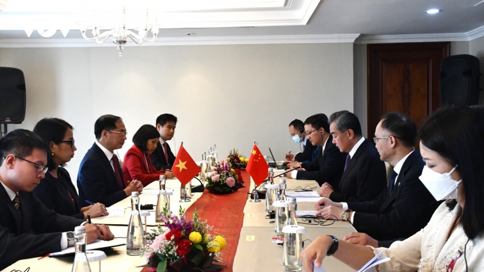 VOV.VN - Ngày 13/7, nhân dịp dự Hội nghị Bộ trưởng Ngoại giao ASEAN lần thứ 56 và các hội nghị liên quan tại Jakarta, Indonesia, Bộ trưởng Bộ Ngoại giao Bùi Thanh Sơn đã hội kiến với Uỷ viên Bộ Chính trị, Chủ nhiệm Văn phòng Ủy ban Công tác Đối ngoại Trung ương Đảng Cộng sản Trung Quốc Vương Nghị.