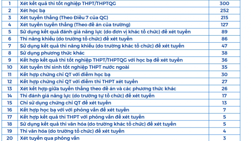 VOV.VN - Năm 2022, theo thống kê của Bộ GD-ĐT, đến thời điểm này có khoảng 20 phương thức xét tuyển đại học, trong đó có nhiều phương thức, tổ hợp xét tuyển mới.