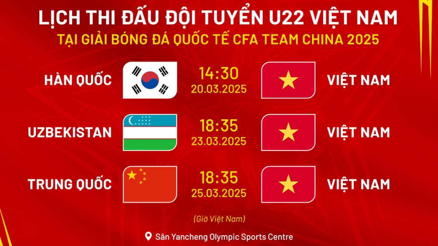 VOV.VN - U22 Việt Nam có cơ hội đấu với sao trẻ Ngoại hạng Anh người Hàn Quốc tại giải giao hữu U22 quốc tế CFA Team China 2025 ở Diêm Thành (Giang Tô).