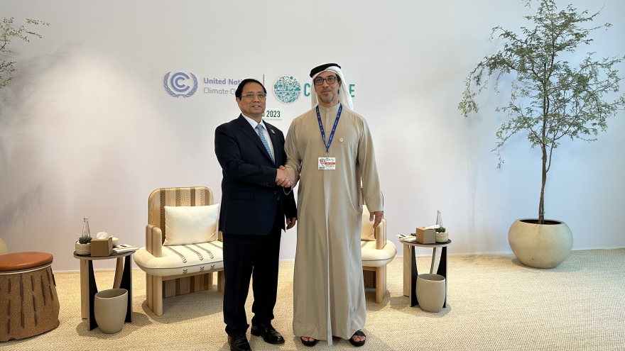 VOV.VN - Ngày 2/12, nhân dịp tham dự Hội nghị lần thứ 28 các bên tham gia Công ước chung của Liên hợp quốc về biến đổi khí hậu (COP28), Thủ tướng Chính phủ Phạm Minh Chính đã có cuộc gặp với Phó Tổng thống UAE Sheikh Mansour bin Zayed Al Nahyan.