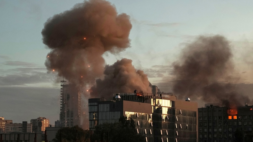 VOV.VN - Thủ đô Kiev và nhiều thành phố khác của Ukraine hôm nay (17/10) lại rung chuyển bởi loạt vụ tấn công bằng UAV cảm tử. Vụ việc xảy ra ngay trước thêm cuộc họp của Ngoại trưởng Liên minh châu Âu (EU) bàn về trách nhiệm của Iran với những cáo buộc cung cấp UAV cho Nga.