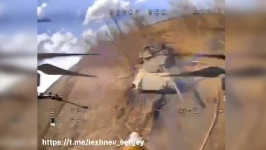 VOV.VN - Một đoạn video được quay từ máy bay không người lái đã cho thấy xe tăng M1 Abrams Mỹ cung cấp cho Ukraine tiếp tục bị quân đội Nga phá hủy ở Donbass.
