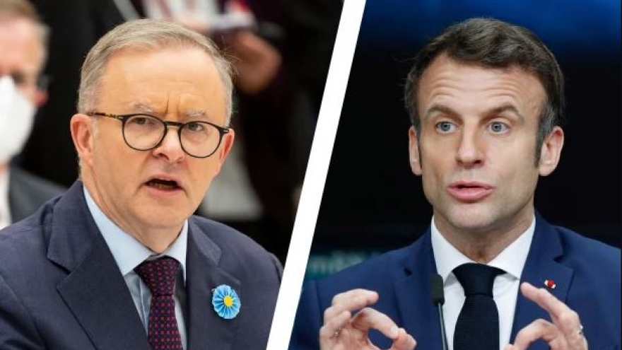 VOV.VN - Tối qua (26/5), Tổng thống Pháp Emmanuel Macron đã có cuộc điện đàm với tân Thủ tướng Australia Anthony Albanese. Trong cuộc điện đàm, Tổng thống Pháp khẳng định muốn xây dựng mối quan hệ tin tưởng và tôn trọng đối với Australia.