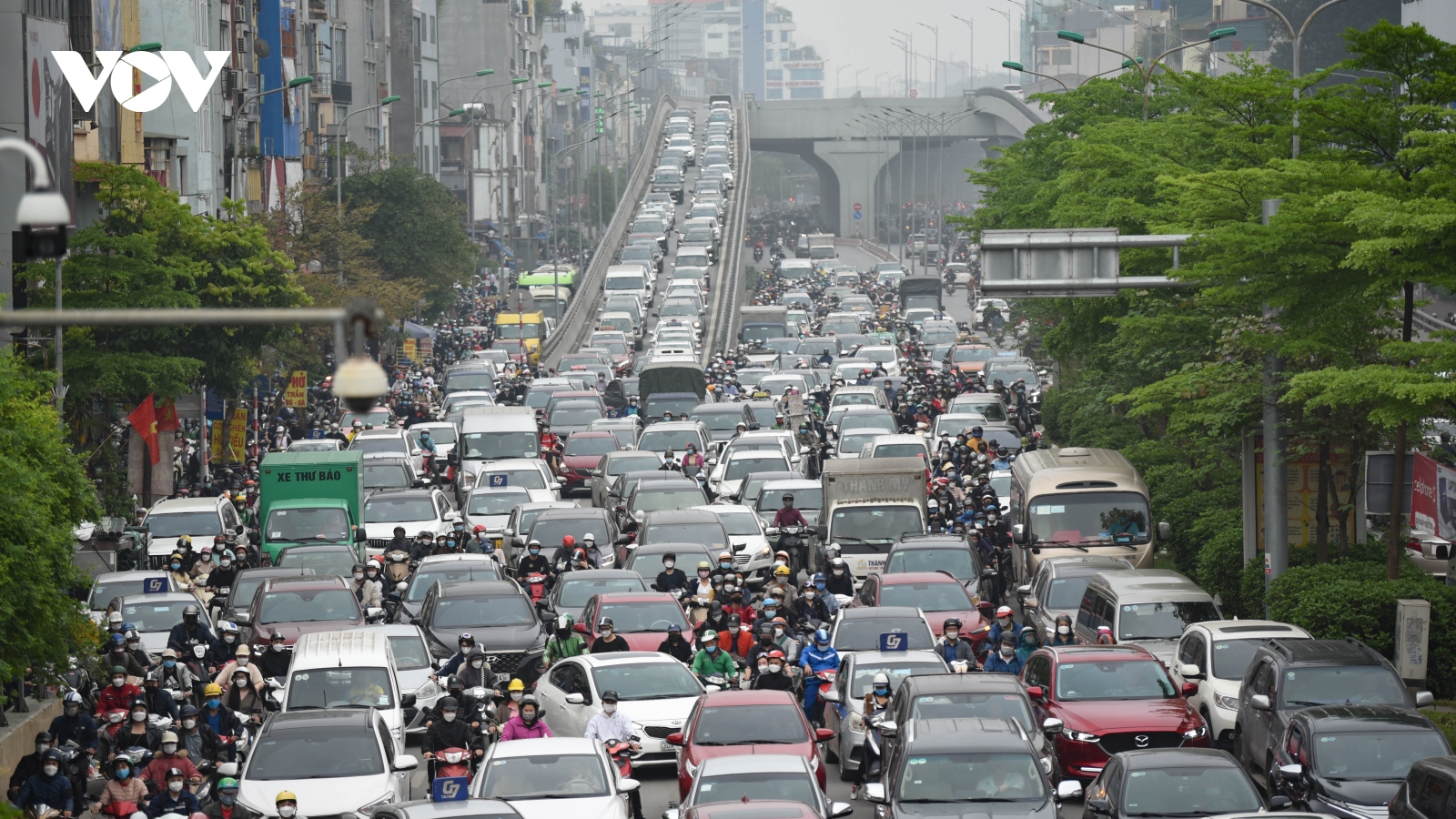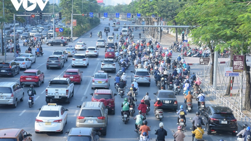 Ô tô dàn hàng ngang, lấn hết làn xe máy trên đường phố Hà Nội