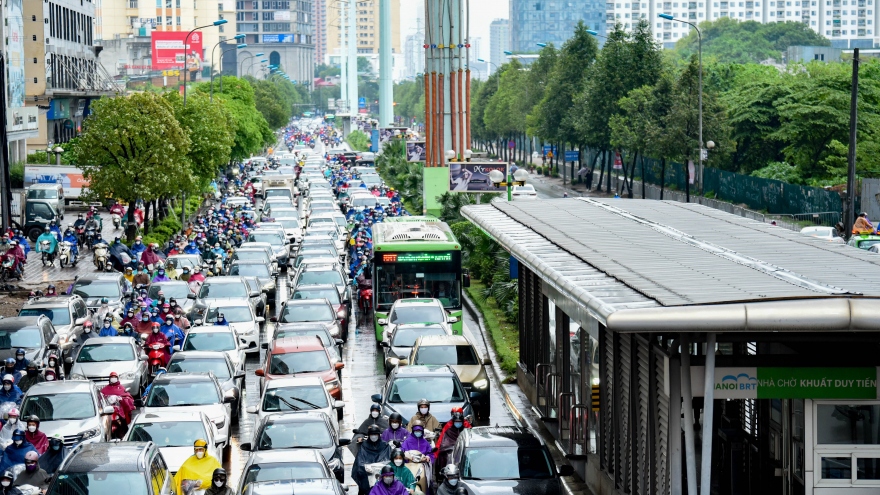 VOV.VN - Sáng 1/4, không khí lạnh tràn về gây mưa rét tại Hà Nội khiến cho xe buýt nhanh BRT liên tục bị ô tô, xe máy lấn làn, tạt đầu,... di chuyển với tốc độ như rùa bò.