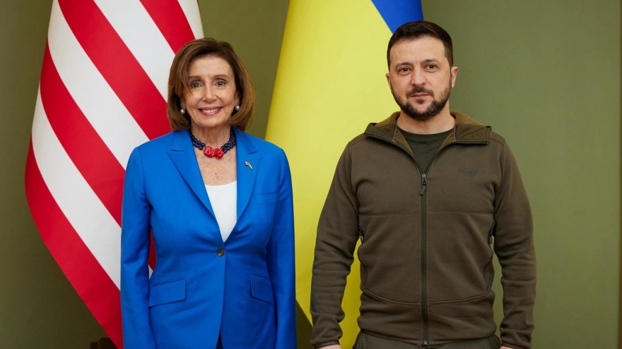 VOV.VN - Bà Nancy Pelosi - Chủ tịch Hạ viện Mỹ, vừa gặp gỡ với Tổng thống Ukraine Volodymyr Zelensky ở thủ đô Kiev. Bà là quan chức cao nhất của Mỹ đến thăm Ukraine kể từ khi nổ ra cuộc chiến tranh với Nga.