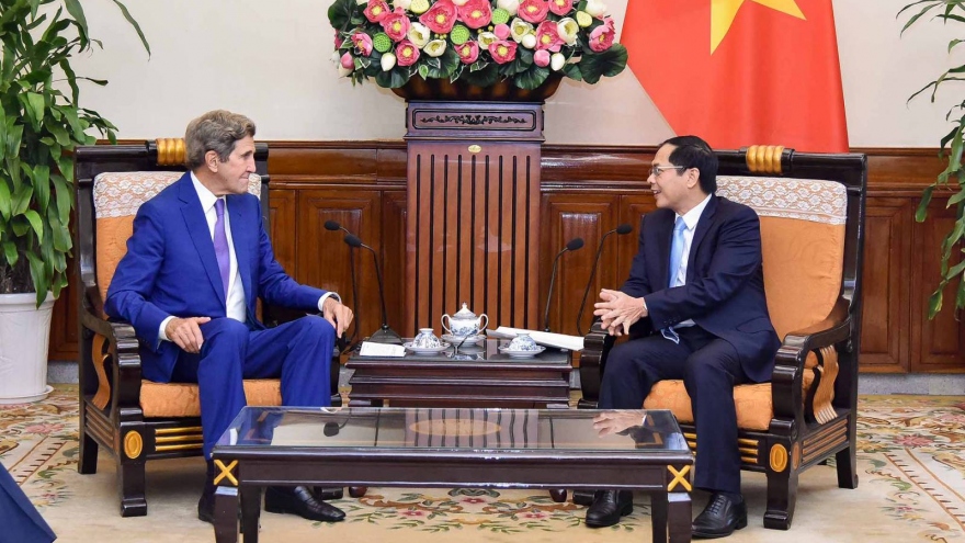 VOV.VN - Đặc phái viên John Kerry khẳng định Hoa Kỳ đánh giá cao cam kết mạnh mẽ của Việt Nam trong ứng phó với biến đổi khí hậu và sẵn sàng hỗ trợ Việt Nam thông qua các cơ chế song phương và đa phương để thực hiện thành công các cam kết này.