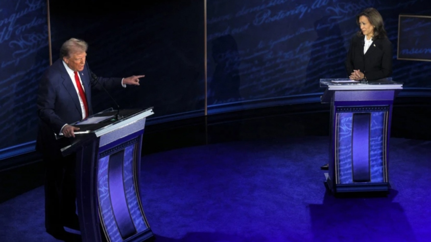VOV.VN - Cuộc tranh luận giữa bà Harris (ứng viên Dân chủ) và ông Trump (ứng viên Cộng hòa) là cuộc tranh luận trực tiếp đầu tiên sau khi đảng Dân chủ thay đổi ứng viên tổng thống.