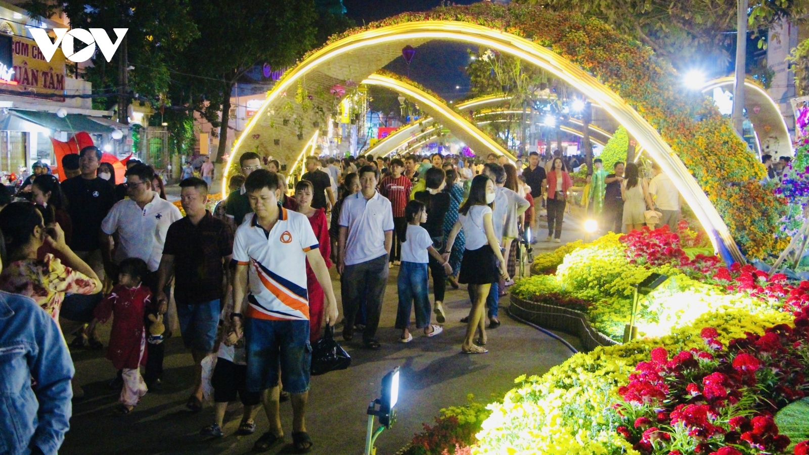VOV.VN - Tối 27/1 (28 Tết), Đường hoa Nguyễn Huệ Tết Ất Tỵ 2025 đã chính thức khai mạc. Dự lễ khai mạc có ông Nguyễn Trọng Nghĩa, Ủy viên Bộ Chính trị, Bí thư Trung ương Đảng, Trưởng Ban Tuyên giáo Trung ương. Cùng dự có ông Nguyễn Văn Nên, Ủy viên Bộ Chính trị, Bí thư Thành ủy TP.HCM và lãnh đạo các ban, ngành, cùng hàng ngàn người dân TP.HCM.