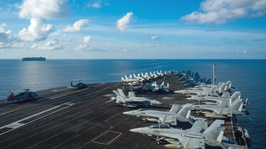 VOV.VN - Nhóm tác chiến tàu sân bay USS Ronald Reagan của Hải quân Mỹ ngày 29/9 đã tiến hành tập trận chung với các tàu quân sự Hàn Quốc ở vùng biển ngoài khơi phía Đông nước này.
