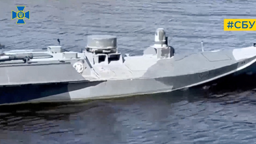 VOV.VN - Lực lượng an ninh Ukraine vừa công bố video về xuồng tự sát (USV) có tên Seababy mà nước này tuyên bố đã sử dụng để tấn công cầu Crimea. USV Seababy có khả năng mang đầu đạn nặng 450kg.