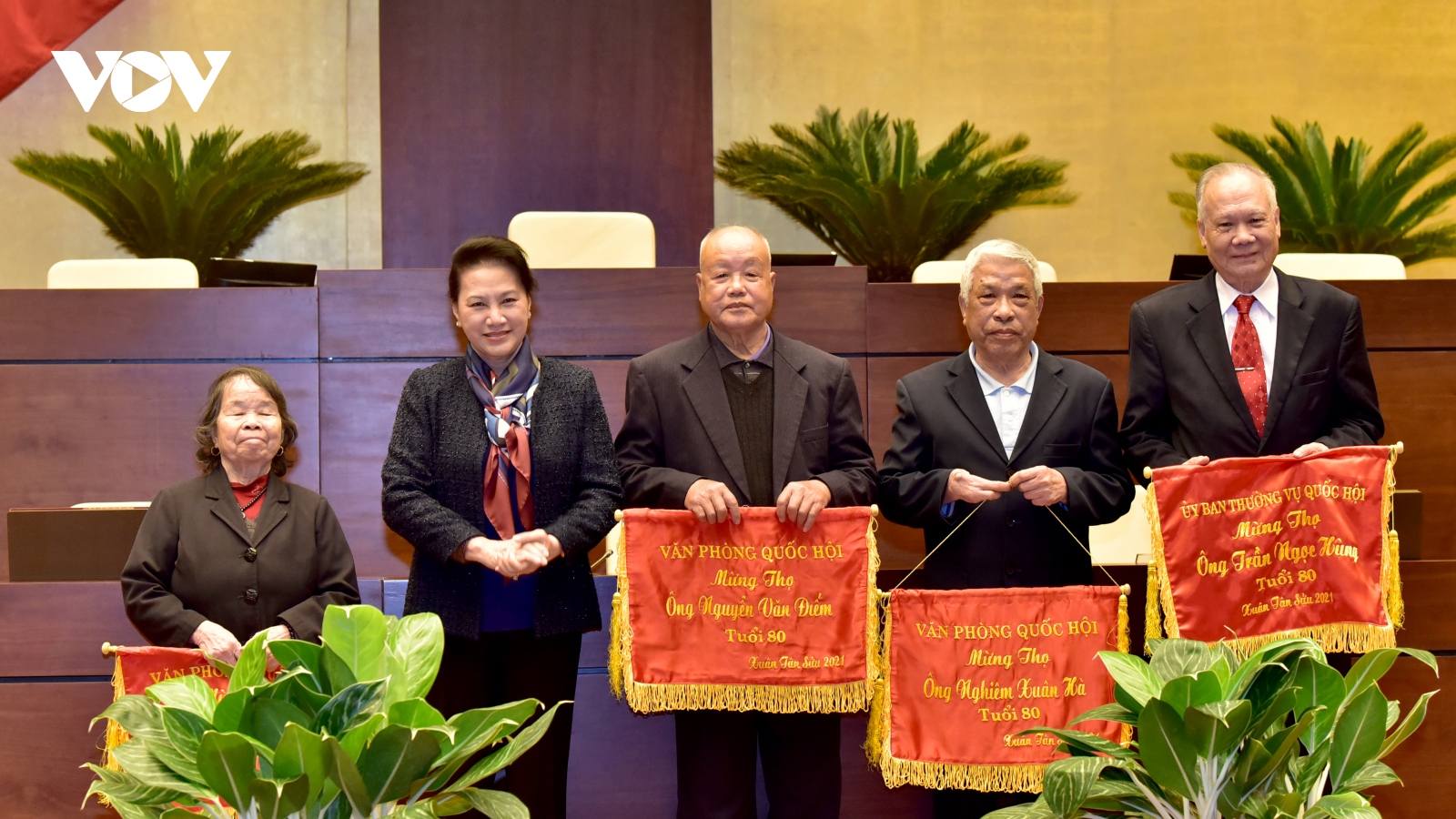 VOV.VN - Chiều 22/1, Ủy ban Thường vụ Quốc hội tổ chức gặp mặt, chúc Tết nguyên lãnh đạo Quốc hội, Ủy ban Thường vụ Quốc hội; các cơ quan của Quốc hội, cán bộ, công chức, viên chức, người lao động của Văn phòng Quốc hội đã nghỉ hưu.