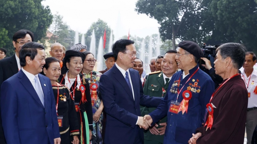 VOV.VN - Sáng 12/12, tại Phủ Chủ tịch, Chủ tịch nước Võ Văn Thưởng gặp mặt đoàn gần 70 đại biểu người có uy tín tiêu biểu, xuất sắc trong đồng bào dân tộc thiểu số năm 2023.