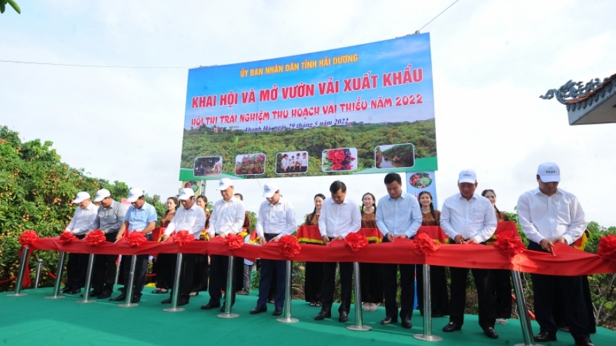 VOV.VN - Hôm nay (29/5), tỉnh Hải Dương tổ chức lễ khai hội, mở vườn vải xuất khẩu và hội nghị xúc tiến thương mại vải thiều Thanh Hà và sản phẩm tiêu biểu tỉnh Hải Dương năm 2022.