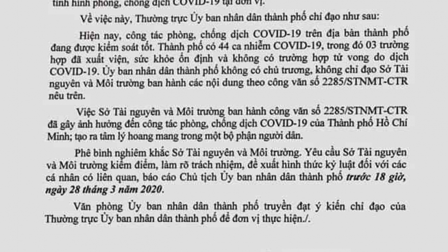 VOV.VN -Chủ tịch UBND TP HCM đã ra hình thức “khiển trách” với PGĐ Sở Tài nguyên-Môi trường vì có liên quan đến sự việc văn bản hoả táng gây hoang mang dư luận.