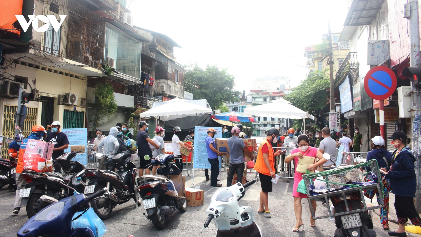 VOV.VN - Ngay sau khi phường Văn Miếu (Đống Đa, Hà Nội) thực hiện cách ly y tế, nhiều ngày nay, đông đảo người dân đã mang lương thực, nhu yếu phẩm đến tiếp tế cho người thân ở trong khu phong tỏa.