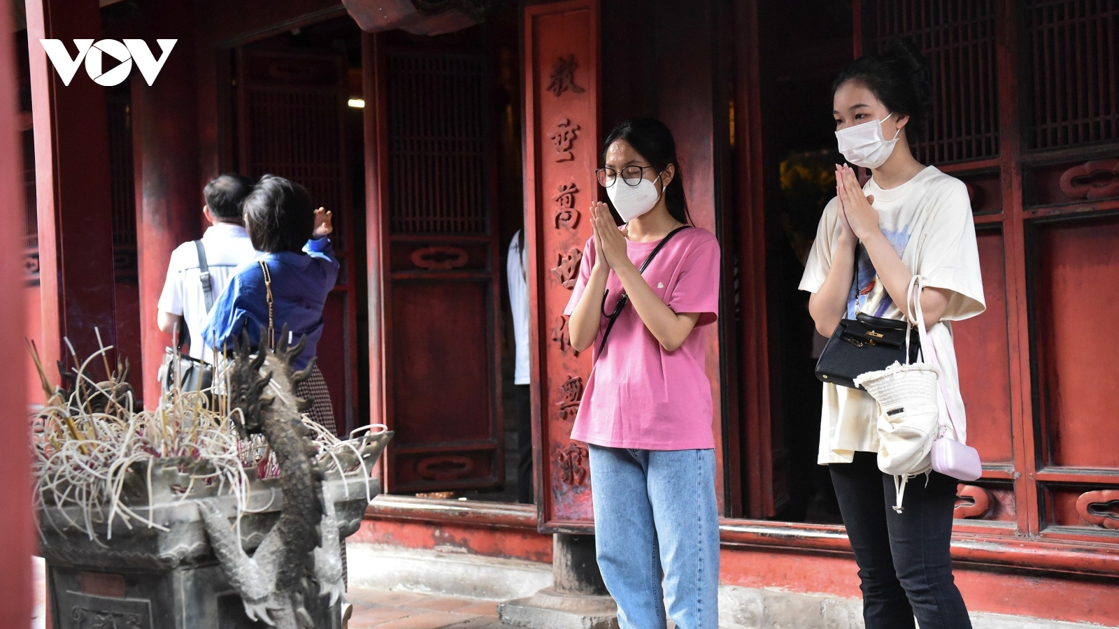 VOV.VN - Kỳ thi tuyển sinh lớp 10 THPT công lập năm nay sẽ được tổ chức trong thời gian 2 ngày từ 10-11/6 gồm 3 môn Toán, Ngữ văn, Ngoại ngữ. Những ngày này, rất đông sĩ tử và phụ huynh tới Văn Miếu - Quốc Tử Giám thắp hương, cầu may mắn.