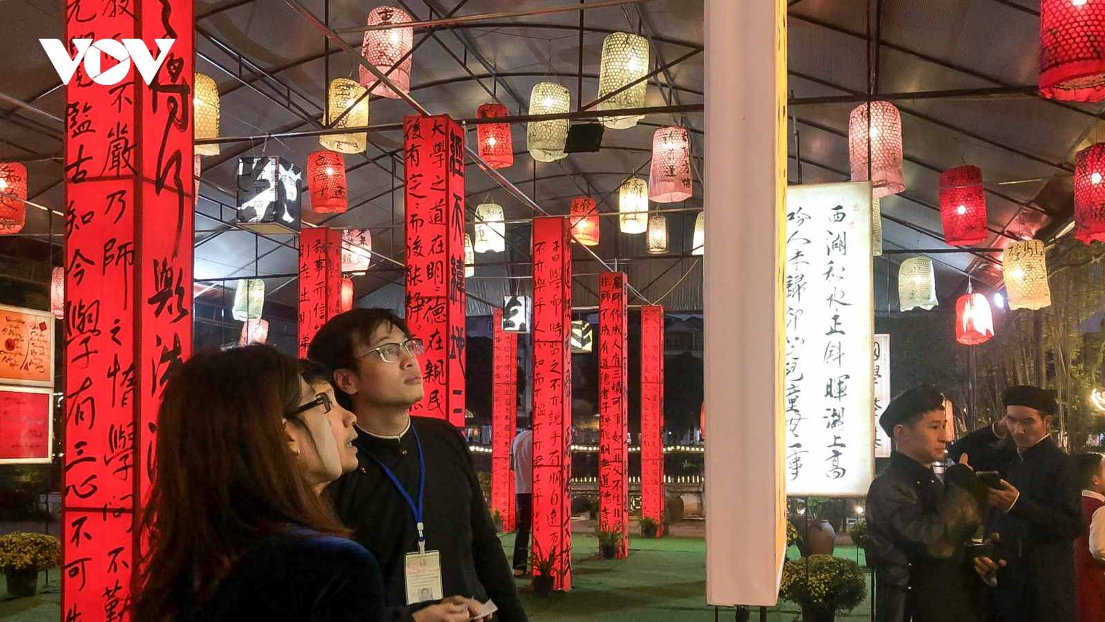 VOV.VN - Chiều tối ngày 3/2, Hội chữ Xuân Giáp Thìn và Triển lãm thư pháp “Hiếu học” chính thức khai mạc trong khuôn viên hồ Văn, Di tích quốc gia đặc biệt Văn Miếu Quốc Tử Giám (Hà Nội)