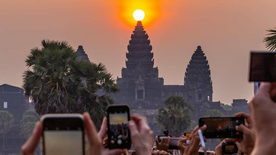 VOV.VN - Ngày 21/3, du khách trong nước và quốc tế đã đổ về Siem Reap (Campuchia) để chiêm ngưỡng khoảnh khắc mặt trời mọc chính xác trên đỉnh của đền Angkor Wat - địa điểm tốt nhất trên thế giới để ngắm bình minh và hoàng hôn.