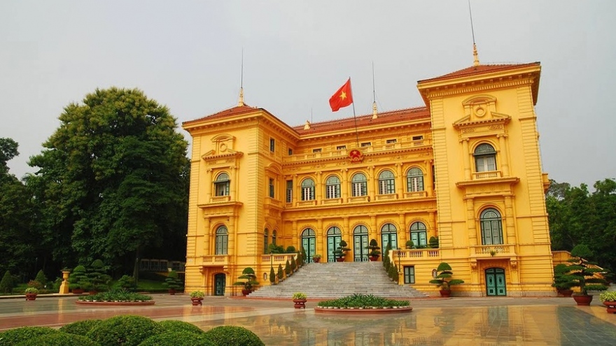 VOV.VN - Chiều 4/2, tại Phủ Chủ tịch, Văn phòng Chủ tịch nước tổ chức trọng thể lễ bàn giao công tác giữa nguyên Chủ tịch nước Nguyễn Xuân Phúc với quyền Chủ tịch nước Võ Thị Ánh Xuân.